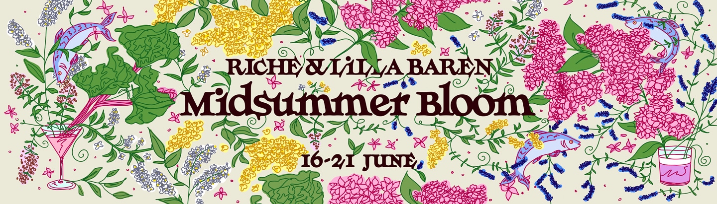 In June, we are happy to once again invite you to our summer tradition: Midsummer Bloom at Riche. From June 16 to 21, the entire restaurant is transformed into a vibrant summer oasis, adorned with beautiful greenery from our own cultivation at Ulriksdal’s Inn. Here, the scents of summer meet classic midsummer flavors in a tribute to the Swedish summer.