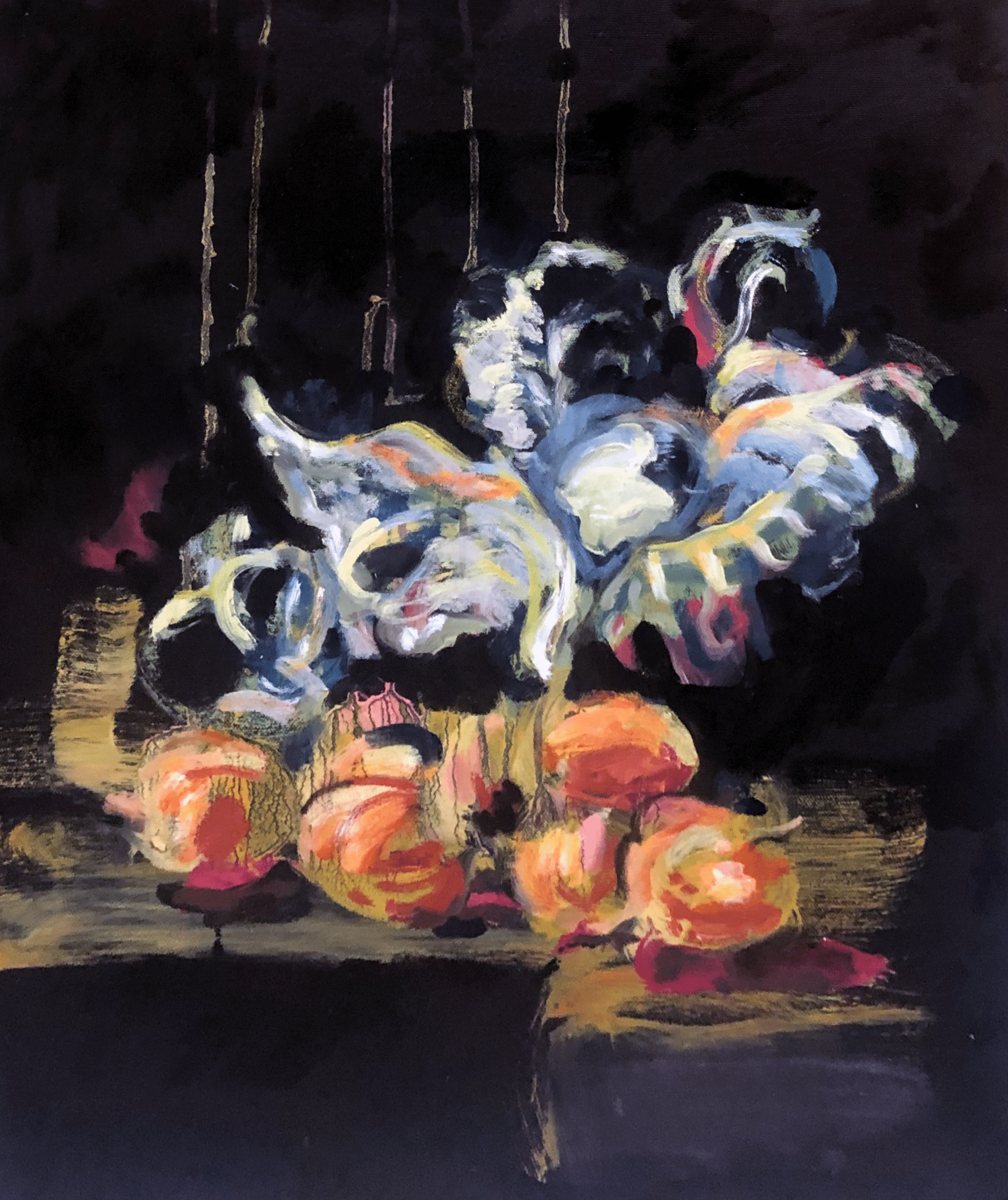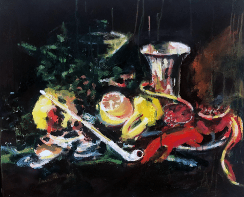 I utställningen Överflöd riktas blicken mot maten – dess pris, dess roll i kulturen och hur den speglar vår tid. I en tid präglad av inflation och ekonomisk oro har livsmedel blivit en allt tydligare symbol för både brist och överflöd. Anckarsvärd knyter an till den konsthistoriska traditionen med matstilleben, där överdådiga dukningar förr signalerade rikedom och status. Men i hans tolkning blir maten också en kommentar till vår tids förskjutningar: från lyx till nödvändighet, från det tillrättalagda till det enkla och ärliga.